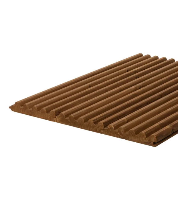 Luna Femma 26×142 is a premium ThermoWood® finger panel with a modern design. This panel product features five fingers, each with a modern twist, including a 10 mm groove and flattened top. Luna Femma is highly suitable for interiors and exteriors where a sustainable and chemical-free wood surface is desired. It looks especially appealing on interior walls.